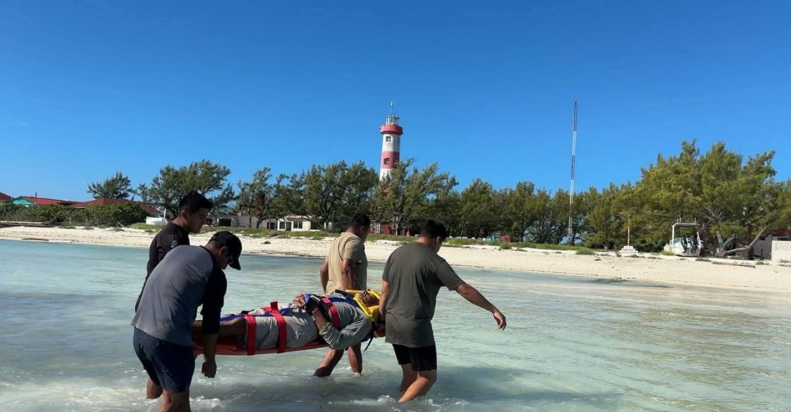 De acuerdo con la información oficial, el incidente ocurrió aproximadamente a dos millas náuticas al norte de Isla Pérez, donde se reportó que un hombre presentaba convulsiones mientras realizaba labores de pesca. Ante la alerta, personal de Sanidad Naval acudió de manera inmediata para brindar atención médica inicial.