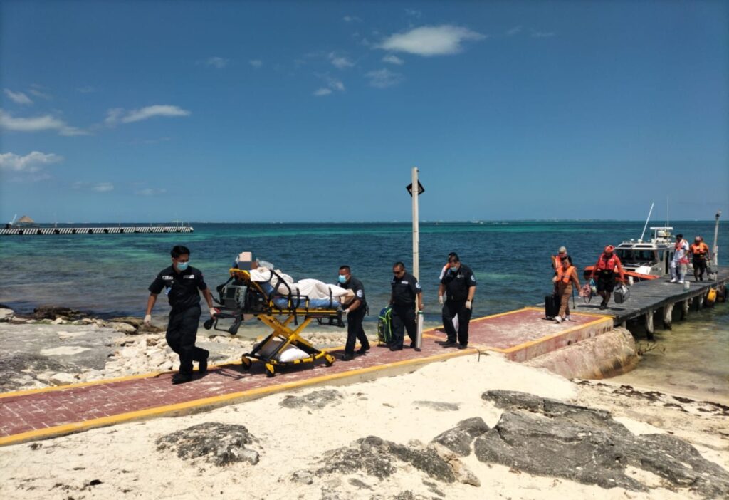 El turista presentaba complicaciones graves de salud y fue trasladado a Puerto Juárez para recibir atención médica especializada en Cancún.