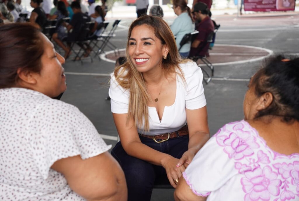 Marybel Villegas Canché arribó al domo y saludó personalmente a los asistentes, quienes la recibieron entre porras y aplausos, al tiempo que le agradecieron su presencia y la oportunidad de acercarles los servicios que ofrece el programa “ABRE LOS OJOS CON MARYBEL”