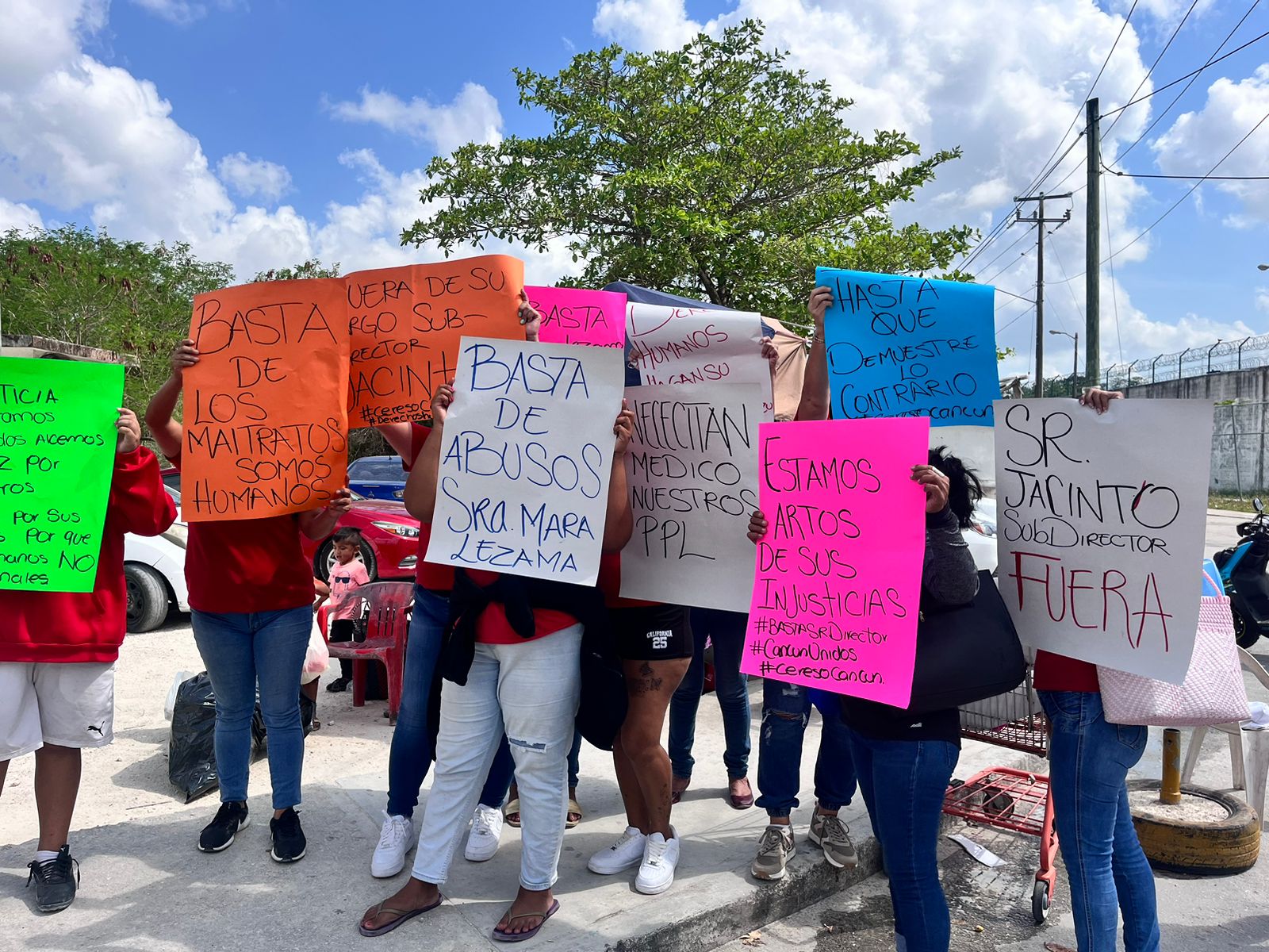 Cancún, Marcrix Noticias.- Un grupo de familiares de internos que se encuentran recluidos en la Cárcel de Cancún, se armaron de valor y decidieron manifestarse ante los malos tratos recibidos de parte del subdirector de este centro de reinserción social y piden la intervención de las autoridades gubernamentales estatales y nacionales.