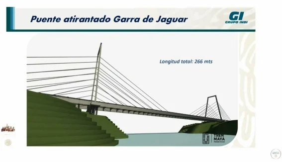 Grupo Indi destacó la construcción de un puente atirantado Garra de Jaguar, de unos 266 metros de longitud, para salvaguardar ríos subterráneos.