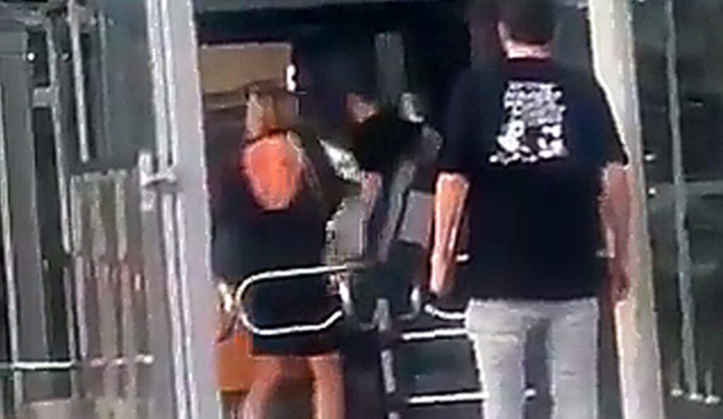La mujer aparece con un vestido negro en la grabación, descansa y con el hacha en su mano derecha. Mientras cruza la calle parece amenazar a otra persona que se hace a un lado y escapa de un posible ataque.