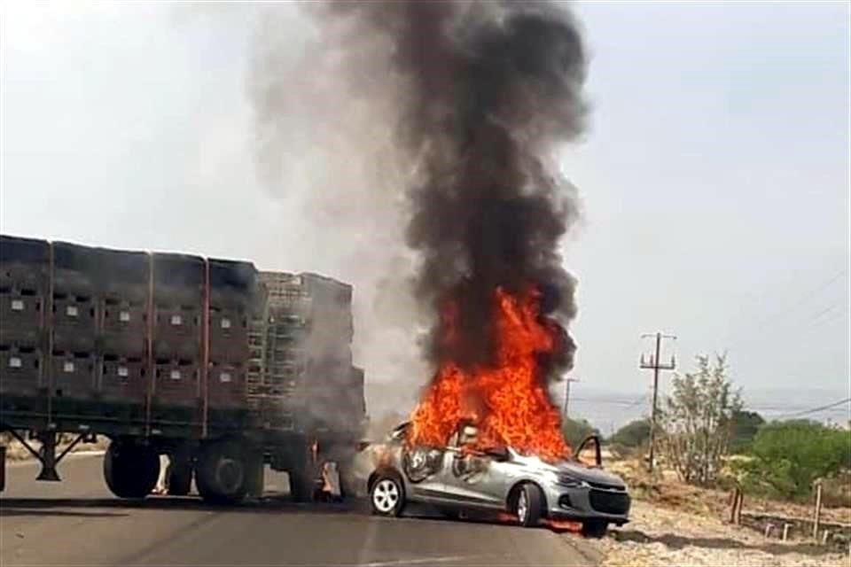 Un camión repartidor fue atravesado sobre la carretera Apaseo el Grande-Celaya e incendiada la cabina.