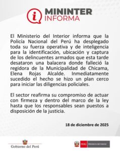 Tras los hechos, el Ministerio del Interior señaló que la Policía Nacional desplegó un operativo de búsqueda e inteligencia para ubicar a los agresores y reiteró su compromiso de llevar a los responsables ante la justicia.