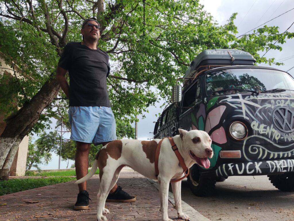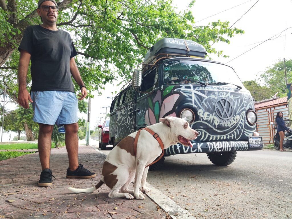 Chetumal (Marcrix Noticias)- Der Müll Toys, artista plástico originario de Celaya Guanajuato, recorre México en “La Bendita”, una combi Volkswagen Clásica; acompañado por “Chuleta”, su cachorra y compartiendo su arte Art Toy en los espacios artísticos y culturales que encuentra a su paso.