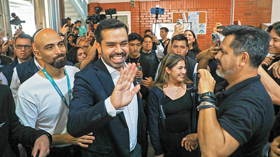 Dado que la casilla no abrió a tiempo, a su llegada Álvarez Maynez debió formarse detrás de decenas de ciudadanos que esperaban para votar.