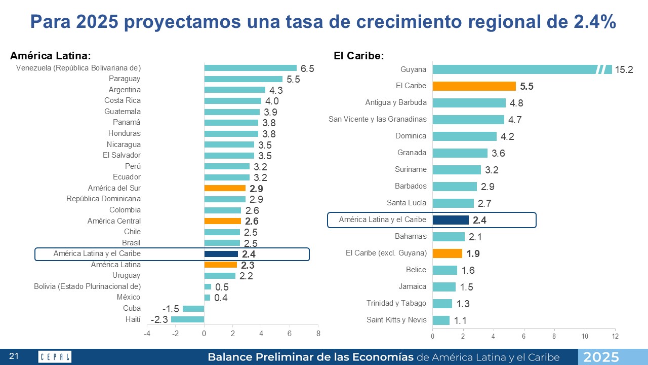 En el lanzamiento de su informe de Balance preliminar, el Secretario Ejecutivo de la Cepal, José Manuel Xirinachs, declaró que solo México y Bolivia presentan perspectivas de crecimiento muy limitadas, mientras que otras naciones de la región se ven con cifras más optimistas.