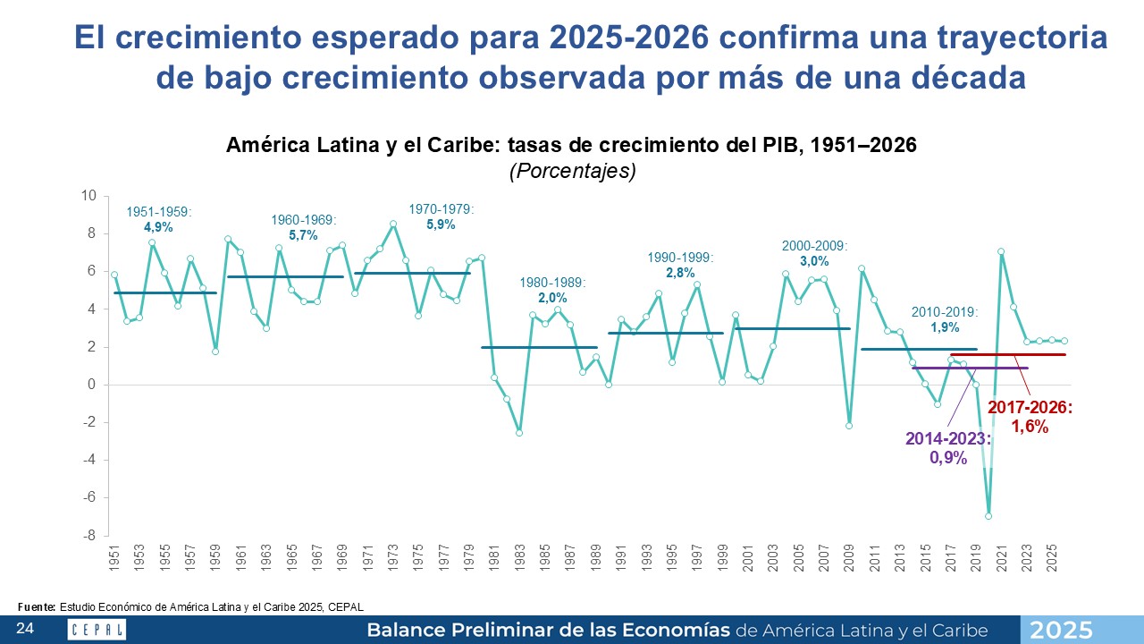 La economía mexicana crecerá por debajo del promedio regional en 2025, afectada por la incertidumbre comercial y condiciones internas, según la Cepal.