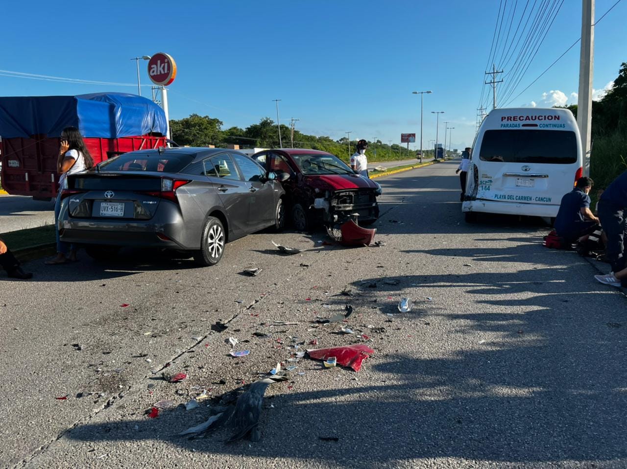 El primer accidente se registró a la altura del “Super Aki” antes de las 8:00 de la mañana, en la carretera federal de Puerto Morelos con dirección a Cancún.