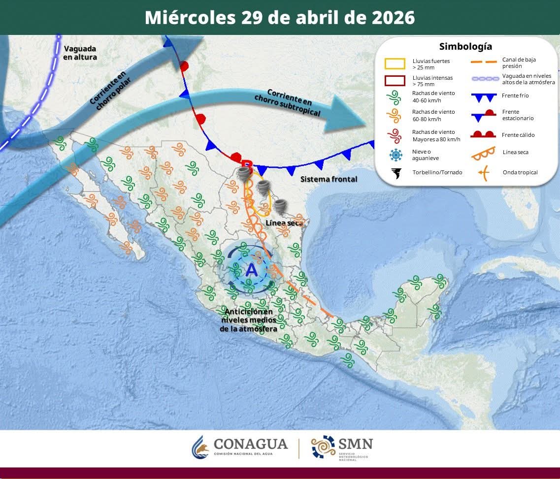 Aunque en el noroeste de México se presentan otros fenómenos que provocarán fuertes rachas de viento, estos no tendrán efectos directos en la región sureste.