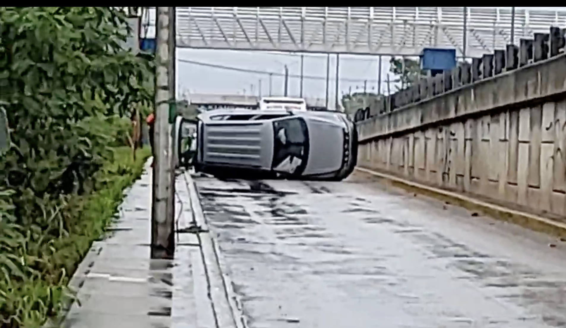 Al parecer debido al pavimento mojado el vehículo derrapó haciendo que el taxista perdiera el control con dos pasajeros a bordo, los cuales resultaron con contusiones leves y fueron valorados por paramédicos de bomberos.