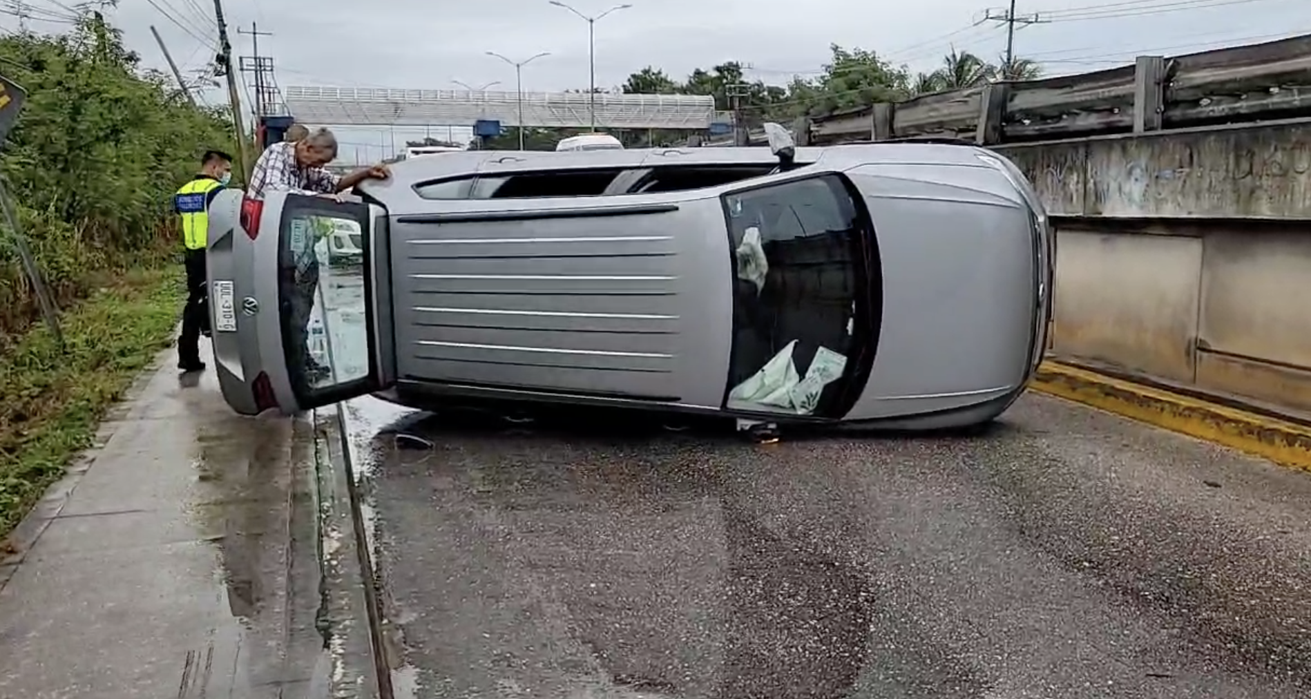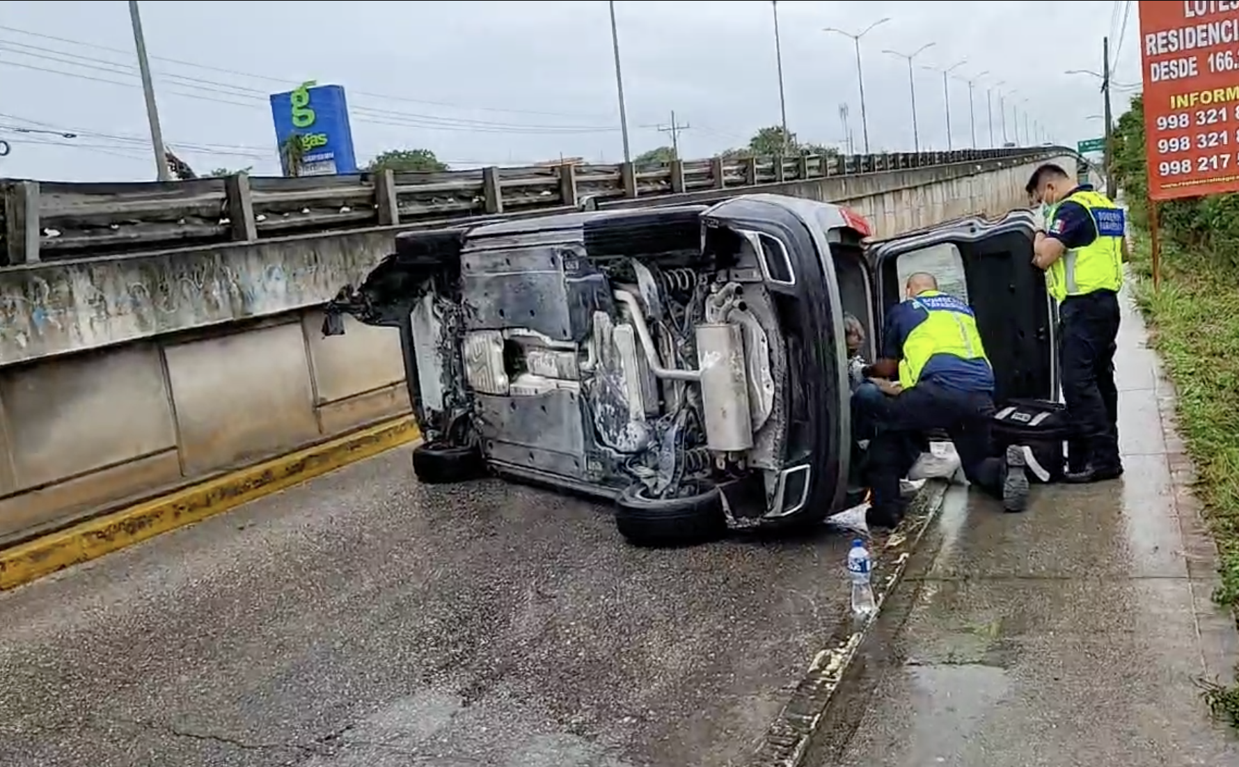 El primer accidente fue la volcadura de una camioneta sobre la Carretera Federal 307 en dirección de norte a sur a la altura de la entrada a la Alcaldía de Puerto Aventuras.