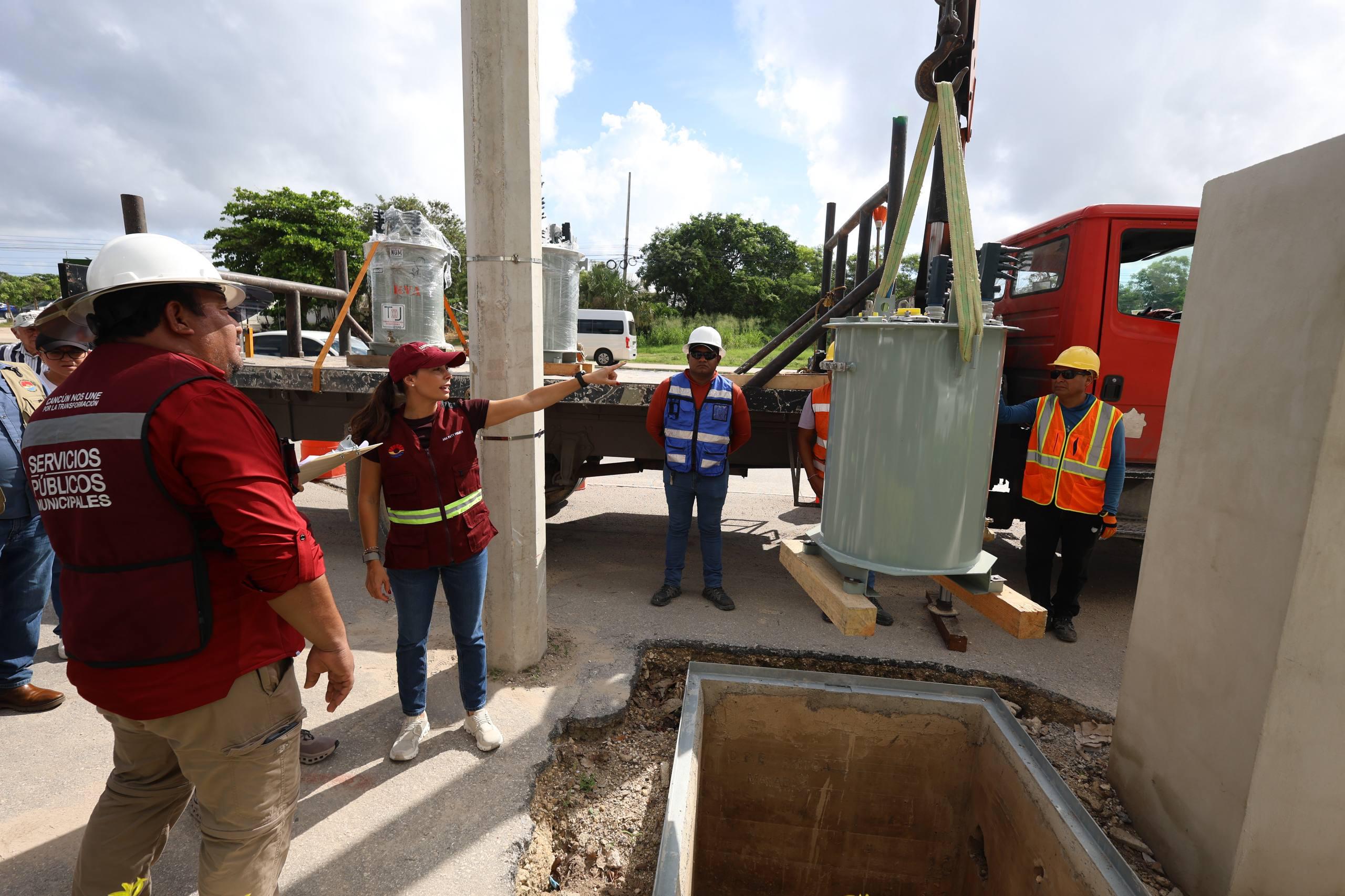 Acompañada por la secretaria de Obras Públicas y Servicios, Samantha Hernández Cardeña, la Primera Autoridad Municipal afirmó que los trabajos van avanzando en tiempo y forma, ya que es en diferentes secciones, además de que los nuevos transformadores del alumbrado público que serán subterráneos tendrán más capacidad para mejorar su funcionamiento.