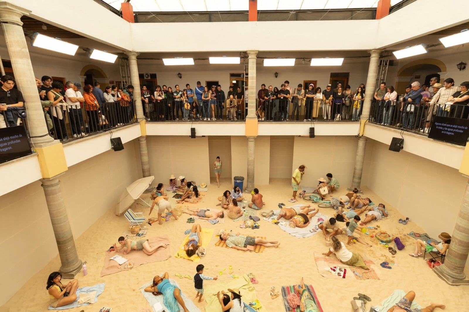 Guanajuato, (Marcrix Noticias).- En su 53 edición, el Festival Internacional Cervantino sorprende al público con “Sun & Sea”, una ópera-performance que transforma el Patio de la Casa de Cultura en una playa artificial con 25 toneladas de arena, toallas y protectores solares, donde los asistentes observan la acción desde lo alto.