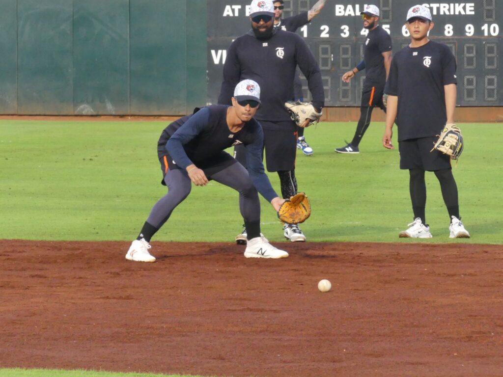 Posteriormente los infielders tomaron rolas, tanto en la tercera base, las paradas en corto, como en la segunda; todo esto con ayuda del mismo manager y de los coches Arnoldo “Kiko” Castro y René Rodríguez. Por su parte, los outfielders tomaron elevados en el jardín central, con tiros simulados al home plate.