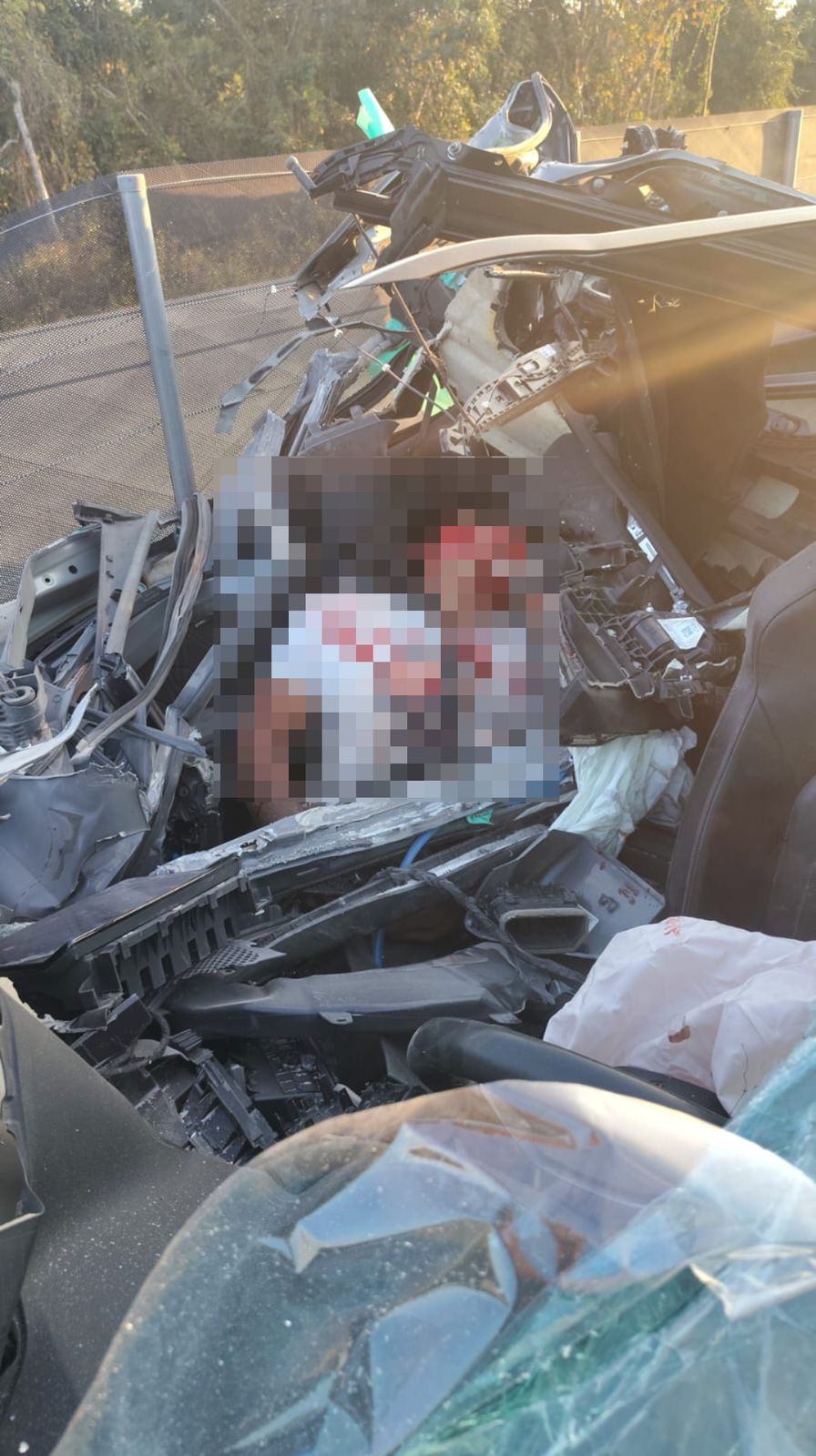 Las imágenes captadas en el sitio del siniestro muestran la severidad del impacto, con la parte frontal y el costado derecho del automóvil deportivo totalmente destruido solicitaron la presencia urgente de las corporaciones de rescate y seguridad.