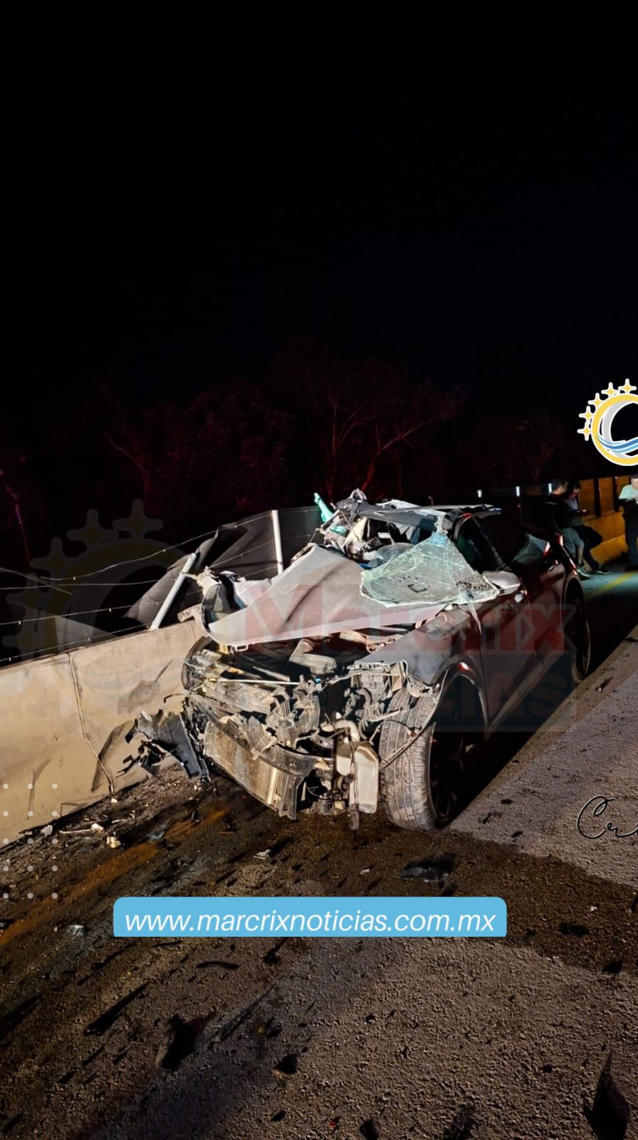 Alerta roja (Marcrix Noticias).- Un trágico accidente vial ocurrió en la autopista Cancún-Mérida cuando el conductor de un automóvil marca Cupra se impactó contra la parte trasera de un volquete. Tras el primer contacto con la unidad de carga, el automovilista perdió el control de la dirección, lo que provocó que el vehículo se proyectara de forma lateral contra un muro de concreto de la vía rápida. Debido a la magnitud del golpe, la persona que viajaba como copiloto perdió la vida de manera instantánea al quedar atrapada entre los restos de la carrocería.
