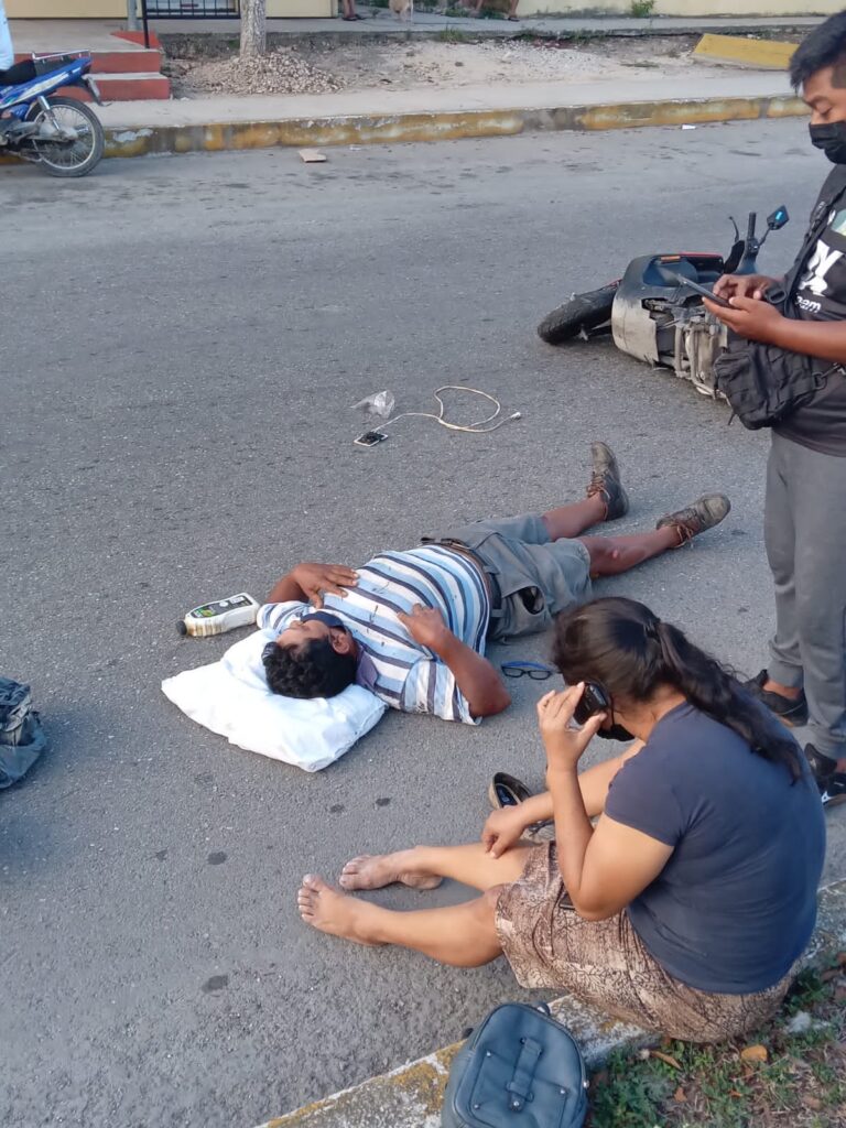 Fueron varios los minutos en los que los motociclistas estuvieron tirados sobre la carpeta asfáltica sin recibir la debida atención médica, pues tan sólo eran auxiliados por testigos, quienes trataban de ayudar como podían.