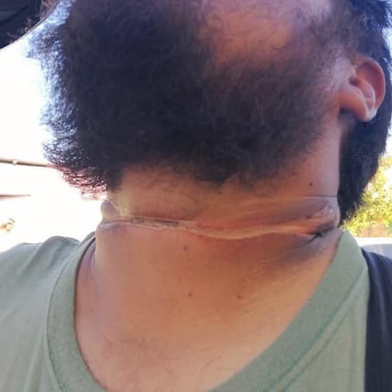 El motociclista dice que no vio el cable que colgaba y este se le atoró en el cuello y aun así avanzó como 50 metros, pero casi al llegar a la esquina tuvo que soltarse de la moto pues sintió un terrible ardor en su cuello.