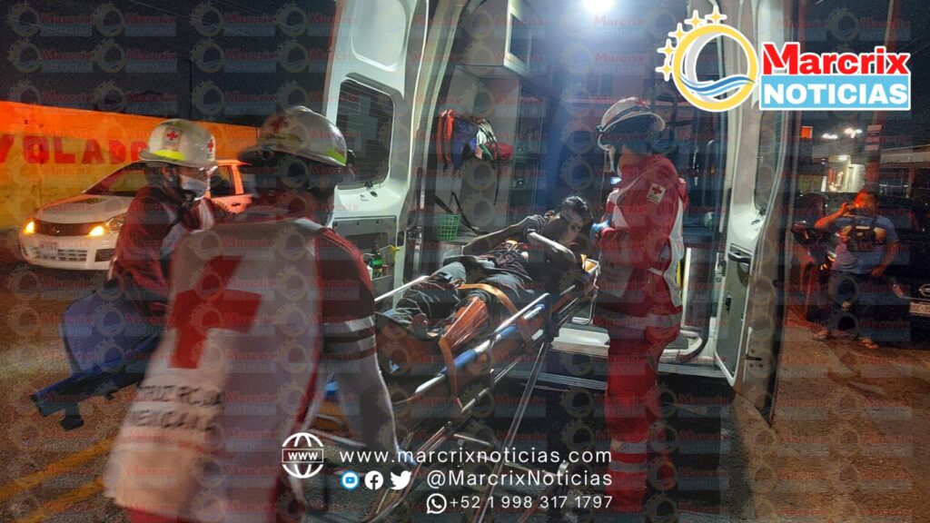Cancún (Marcrix Noticias).- Con fractura expuesta de una de sus piernas, terminó un motociclista, luego de ser impactado por el conductor de un taxi en las inmediaciones de la Supermanzana 73 de Cancún.