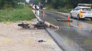 Cancún, Quintana Roo,.— Un motociclista resultó gravemente herido la tarde de este lunes tras protagonizar un fuerte accidente vial en la brecha conocida como Gas Auto, en Cancún, luego de impactarse contra una van de transporte turístico.