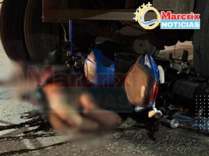 De acuerdo con reportes en el sitio, la unidad involucrada es una motocicleta azul con placa 06UVB1 de Quintana Roo, presuntamente de la marca Kawasaki, cuyo conductor terminó debajo de las llantas de la pesada unidad.