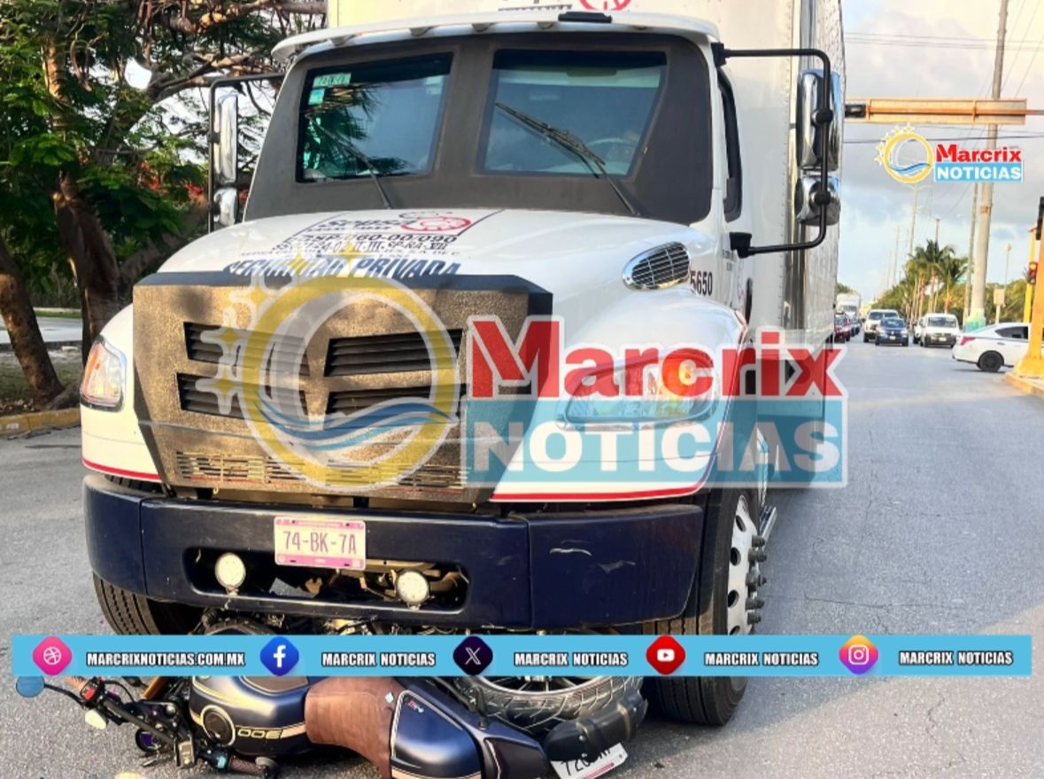 Un motociclista resultó con lesiones de gravedad tras ser impactado por una unidad de custodia de seguridad privada de la empresa Sepsa en el cruce de la Avenida Andrés Quintana Roo y la Industrial, entre las regiones 95 y 96 de Cancún.