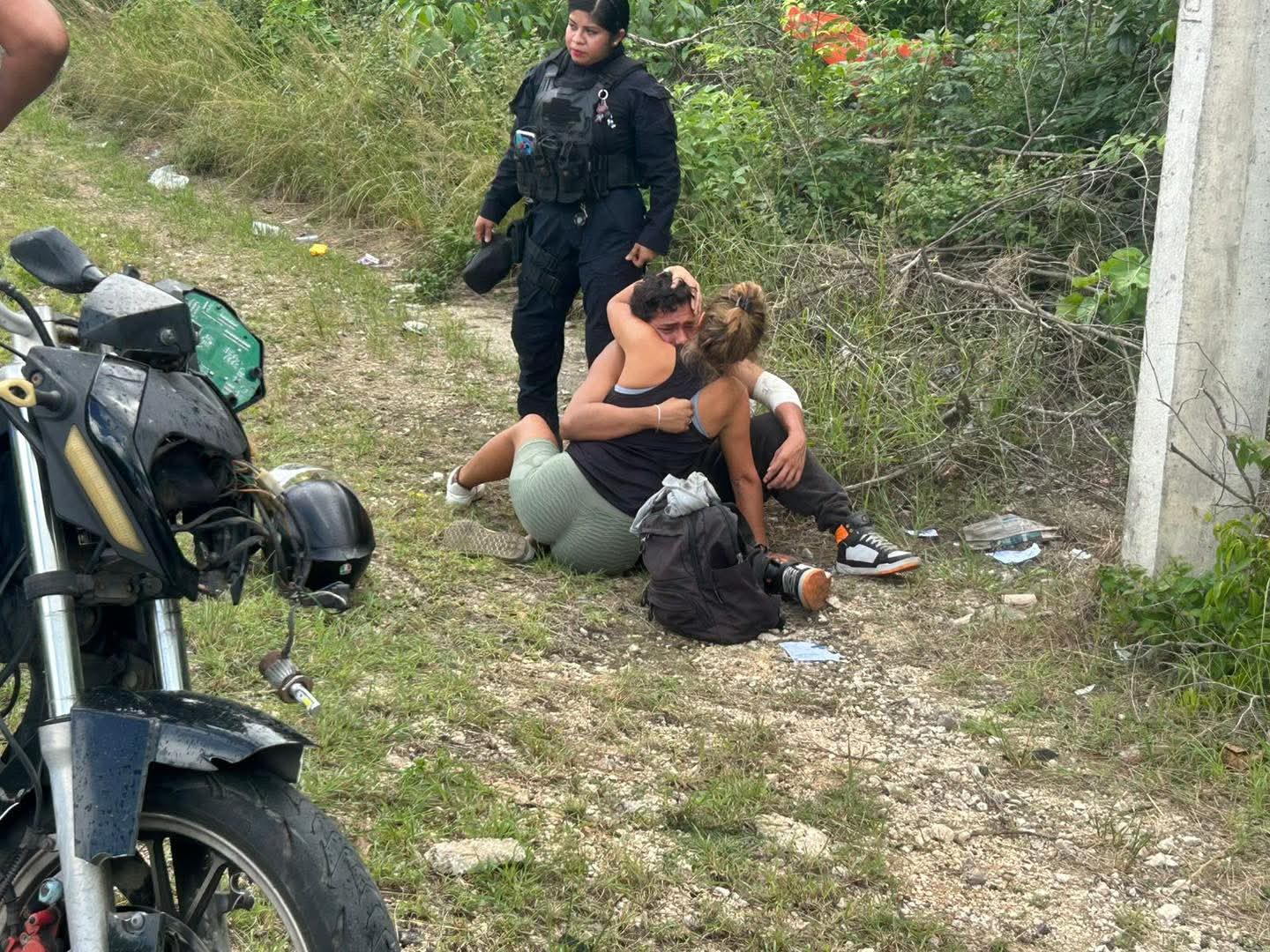 Joven motociclista terminó con múltiples golpes y raspones luego de ser embestido por un auto que invadió su camino en Playa del Carmen.