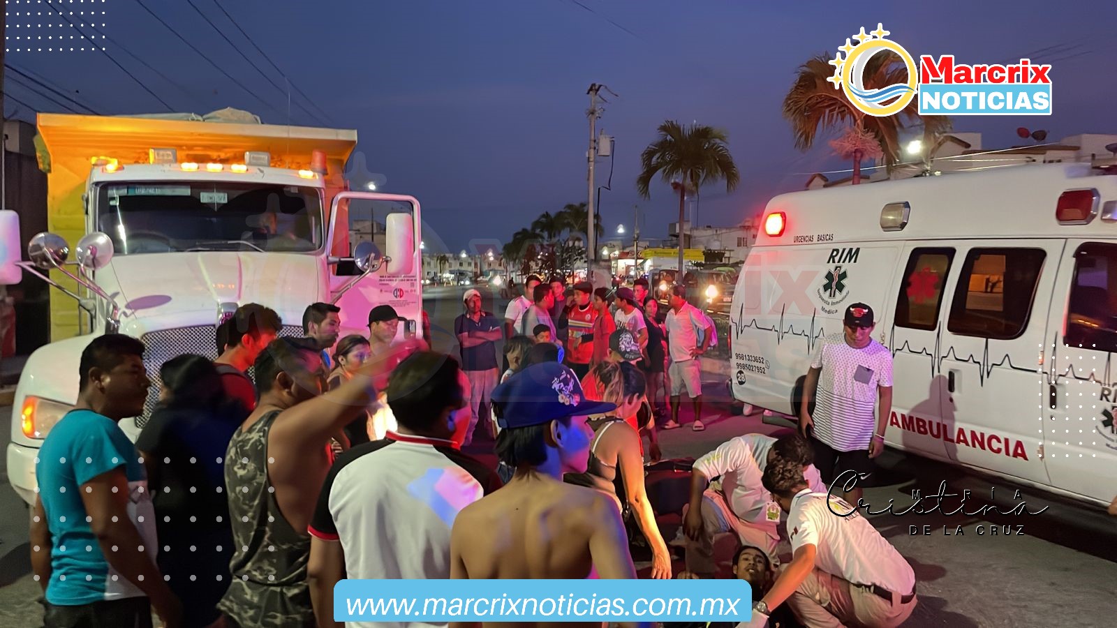 Cancún (Marcrix Noticias).- Un motociclista se estampó esta noche contra un volquete en la Supermanzana 259, en el fraccionamiento Villas Otoch Paraíso.