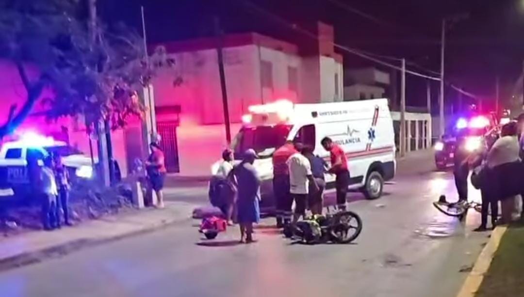 Al motociclista lo tuvieron que llevar de emergencia al hospital luego del aparatoso accidente que sufrió en la avenida 11 Sur.