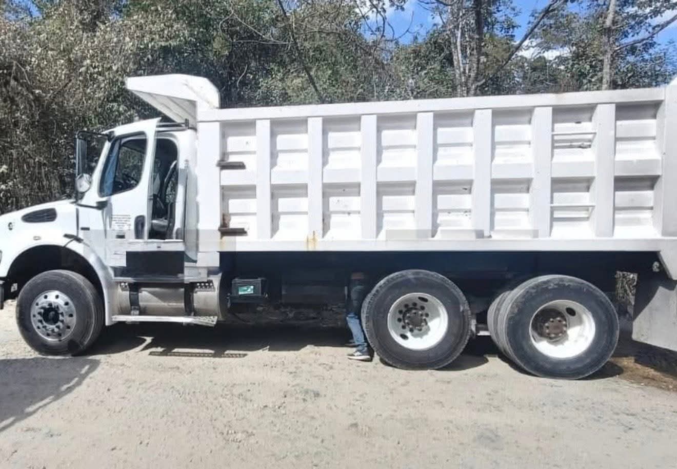 Presuntamente, una manguera del sistema hidráulico se reventó, lo que obligó al conductor a detener la marcha para revisar el desperfecto. En un intento por solucionar el problema, levantó manualmente la caja del volquete y se introdujo debajo sin colocar algún soporte de seguridad.