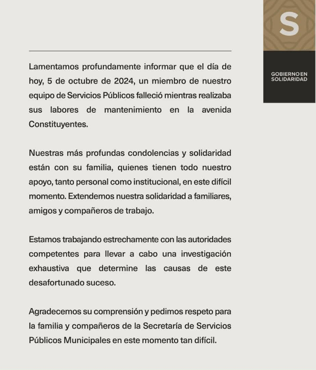 Mercado, también añadió que están colaborando con las autoridades competentes para llevar a cabo una investigación exhaustiva que determine las causas de este desafortunado incidente y pidió respeto para la familia y compañeros del trabajador en este difícil momento.