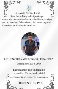 Maldonado, quien formó parte de la generación 2014-2018 de la Normal Rural Isidro Burgos, fue uno de los normalistas heridos aquella noche en Iguala, Guerrero.