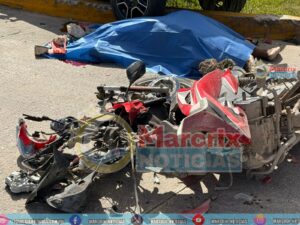Debido a la fuerza del impacto, el motociclista perdió la vida de manera instantánea; su cuerpo quedó tendido sobre el pavimento, en medio de un charco de sangre, mientras que la motocicleta resultó completamente destrozada.