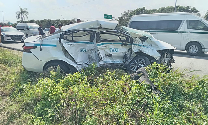 De acuerdo con datos preliminares, el choque ocurrió cerca de las 14:00 horas, cuando un taxi del Sindicato de Taxistas de Playa del Carmen, circulaba de sur a norte; asimismo iba una camioneta particular marca Honda, misma que, tras la colisión, terminó fuera de la vía de rodamiento.