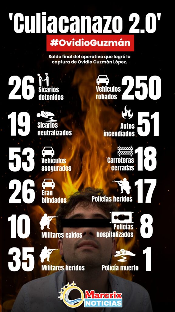 Ciudad de México (Marcrix Noticias).— Un saldo de 29 muertos, entre ellos 10 militares, dejó el operativo de las Fuerzas Armadas para detener a Ovidio “N”, uno de los supuestos líderes del Cártel de Sinaloa, informó la Secretaría de la Defensa Nacional (Sedena).