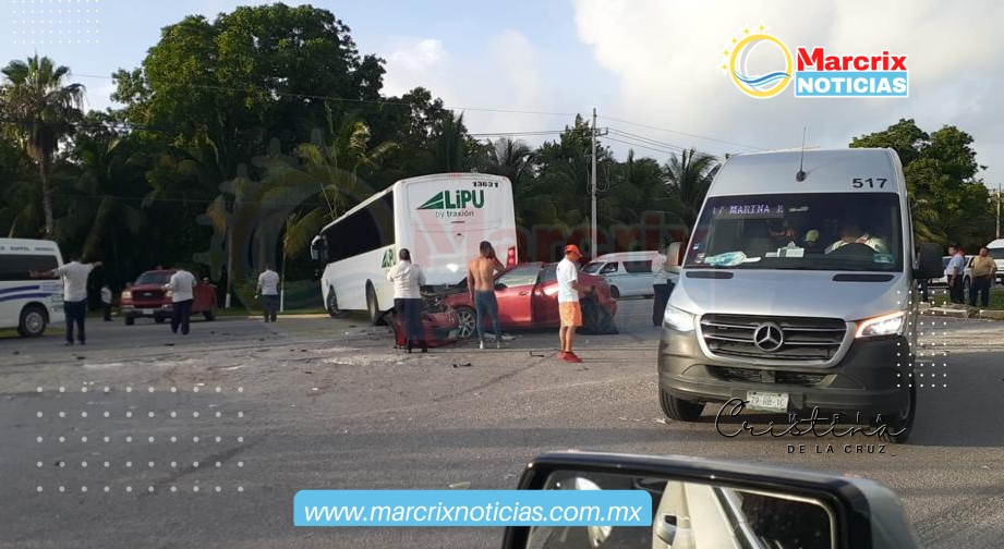 El vehículo particular de color rojo, al parecer de la marca Mazda, circulaba sobre la carretera federal en dirección a Cancún, cuando se encontró de frente con el autobús, que daba una vuelta a la izquierda para ingresar a un complejo hotelero, Dorado Royale.