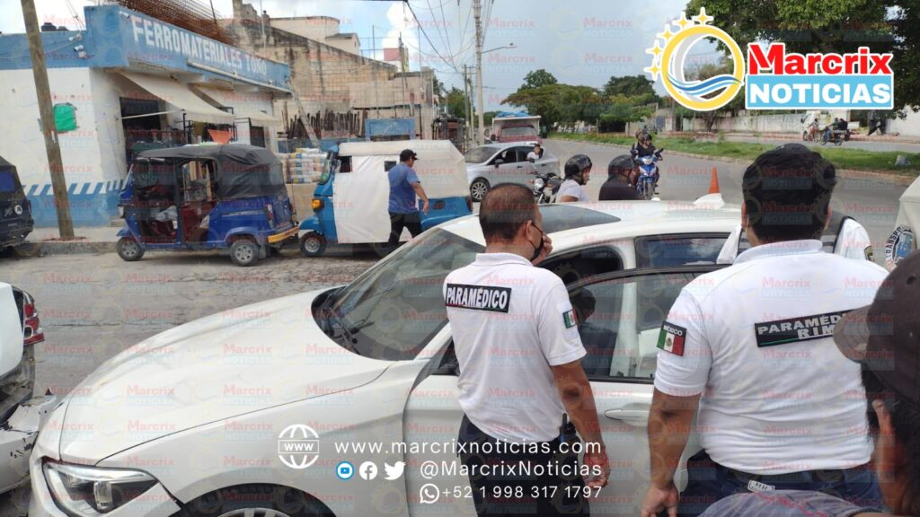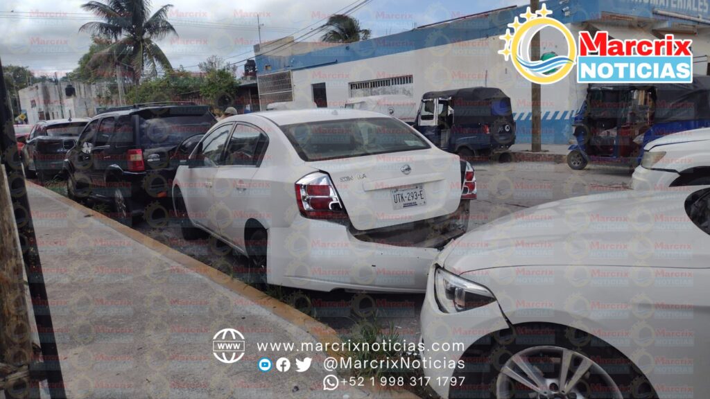 Cancún (Marcrix Noticias).- La conductora de un automóvil provocó un aparatoso accidente en la Supermanzana 227 de Cancún, donde se estrelló contra 3 vehículos.