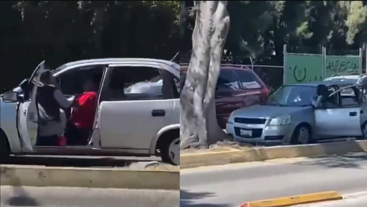 Durante el trayecto, se escuchan los gritos de la víctima pidiendo auxilio y señalando que el hombre intentaba robarle el auto.