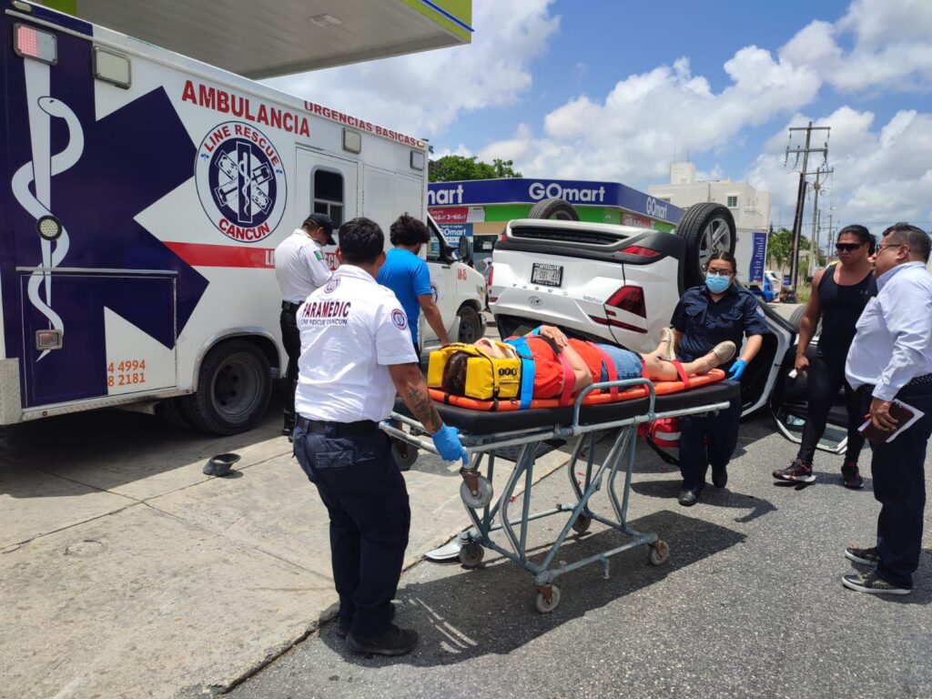 Los hechos sucedieron cuando la mujer que conducía un automóvil color blanco tipo Hyundai Creta, quiso ganar el paso cuando venía sobre la avenida Cancún en dirección de Poniente a Oriente, al no ceder el paso a un vehículo que transitaba con preferencia de paso ,provoca ser colisionado por el automóvil tipo Mitsubishi, quien transitaba sobre la misma vía en dirección de Oriente a Poniente, mismo que del impacto es proyectado y colisiona al carro Toyota color gris, mismo que se encontraba en una parada momentánea sobre la avenida 127 en dirección de Sur a Norte siendo esta su posición final.