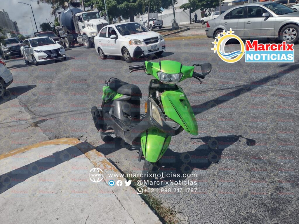 De acuerdo a las versiones de los testigos, el taxi del sindicato Andrés Quintana Roo con número 4169 intentó doblar a su izquierda y chocó a moto.