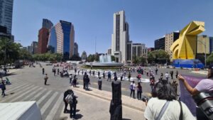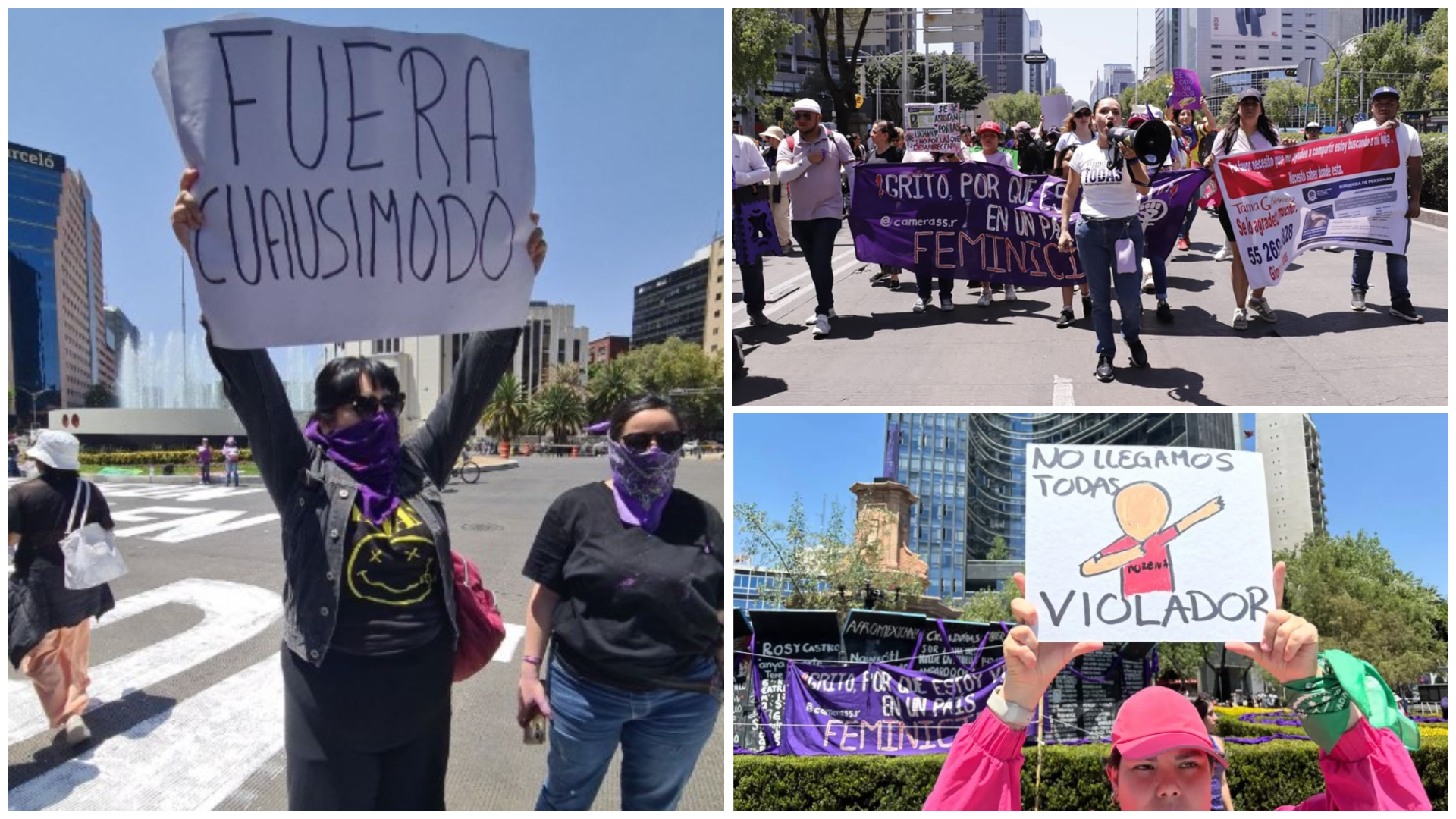 Las manifestantes gritan consignas como “¡A juicio, Cuauhtémoc!” y “¡Fuera Cuauhtémoc, fuera!” mientras avanzaban hacia la Torre Caballito.