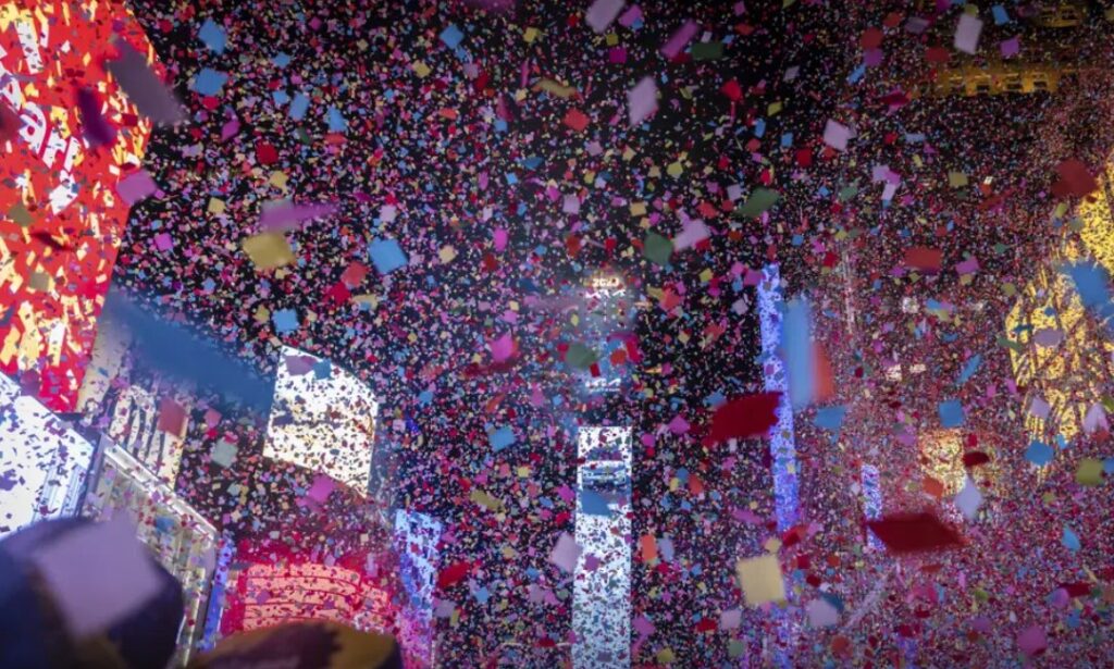 Al filo de la medianoche, se prevé la caída sobre la multitud de una tonelada de confeti que brillará entre las gigantescas pantallas y las luces neón estroboscópicas.