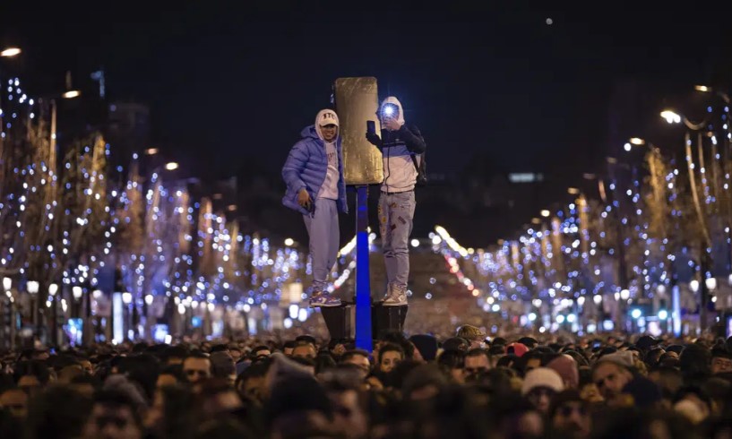 En París, miles celebraron en los Campos Elíseos, mientras el presidente francés Emmanuel Macron prometía en un discurso de Año Nuevo televisado seguir apoyando a Ucrania.