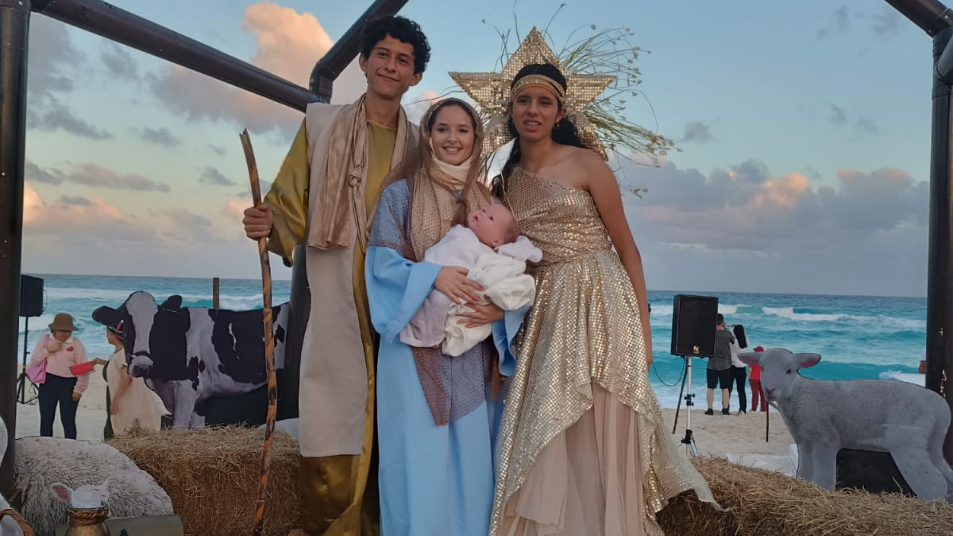 La puesta en escena “Historia de la Navidad en la Playa”, organizada por la comunidad Evangelización Creativa, conformada por familias cancunenses, busca transmitir un mensaje de fe, esperanza y unidad a través de la representación del nacimiento de Jesús.