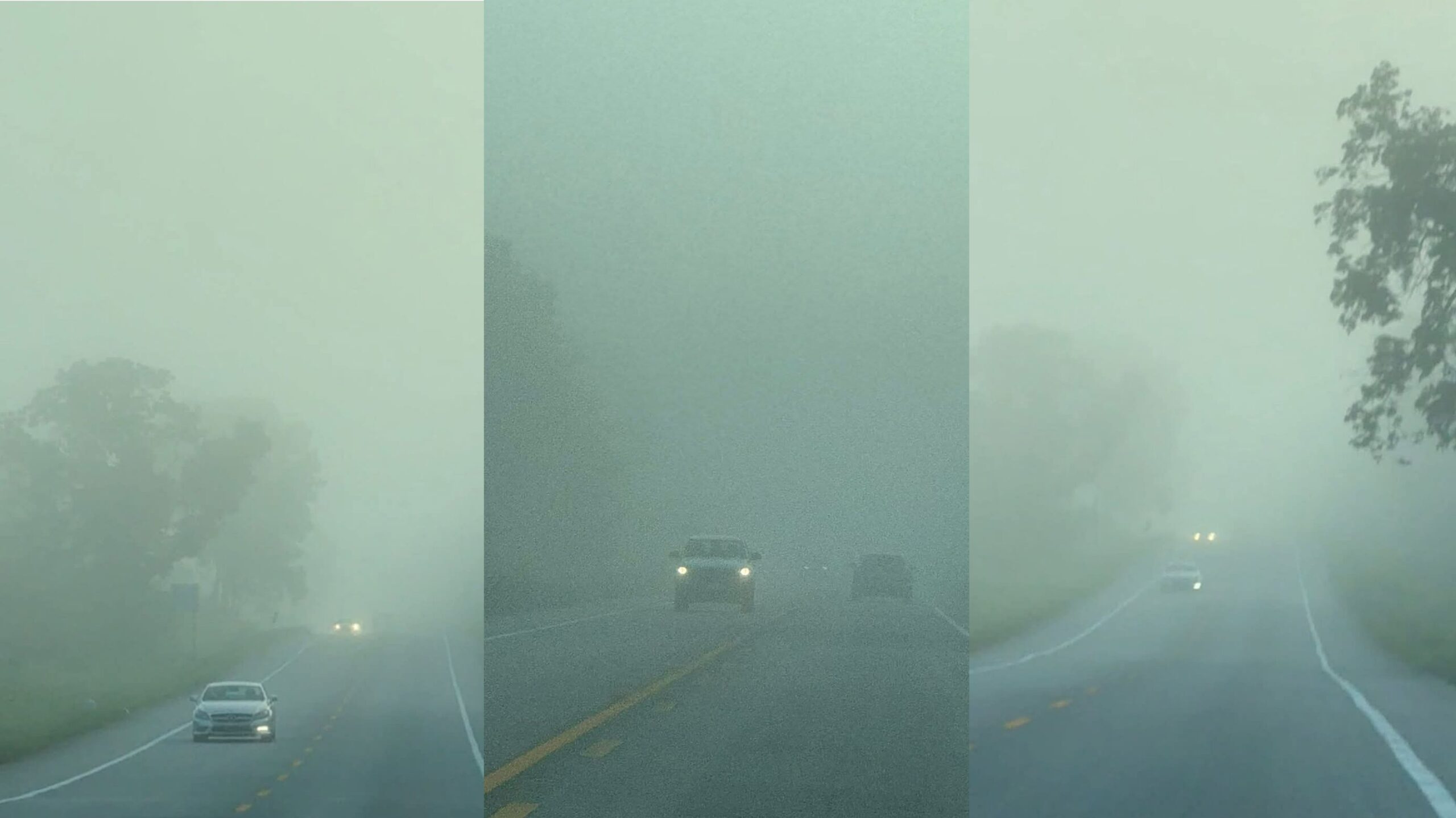 En redes sociales, el usuario Adrián Martínez compartió fotografías que muestran el paisaje envuelto en una densa capa blanca, describiéndolo como un momento que daba la impresión de cruzar un “portal” en medio de la carretera.