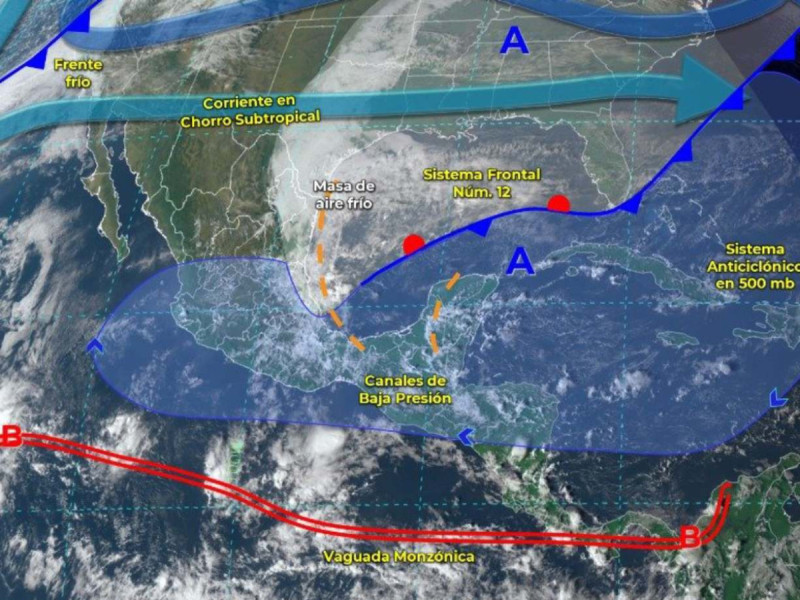 De acuerdo con el comunicado del organismo dependiente de la Comisión Nacional del Agua (Conagua), un canal de baja presión sobre el sureste mexicano y la Península de Yucatán, generará chubascos y lluvias fuertes acompañados de descargas eléctricas en las regiones mencionadas, con lluvias puntuales muy fuertes en Chiapas y Tabasco.