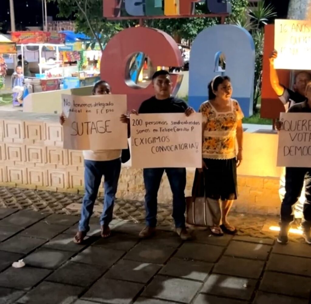 Agremiados en Felipe Carrillo Puerto iniciaron con las primeras manifestaciones para exigir la publicación de la convocatoria para elección del sucesor y se apostaron en el Parque Ignacio Zaragoza, de Felipe Carrillo Puerto, para exigir la convocatoria a elecciones.