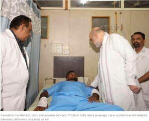 Ahmedabad, India (Marcrix Noticias).- Viswash Kumar Ramesh, el único sobreviviente del accidente del vuelo 171 de Air India, compartió su conmovedora experiencia tras la tragedia que dejó un saldo de más de 240 muertos.