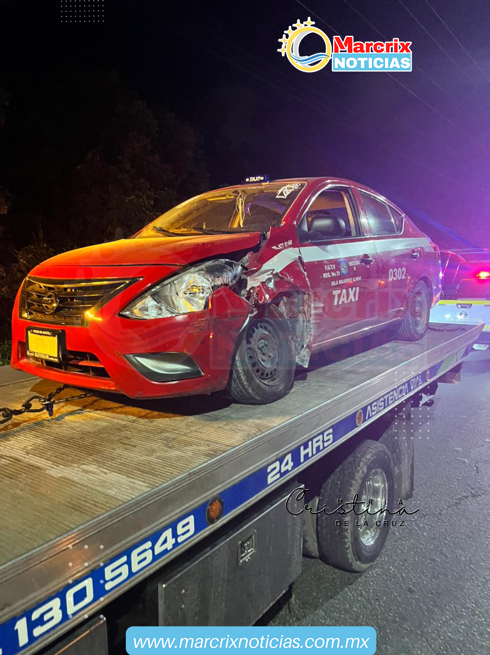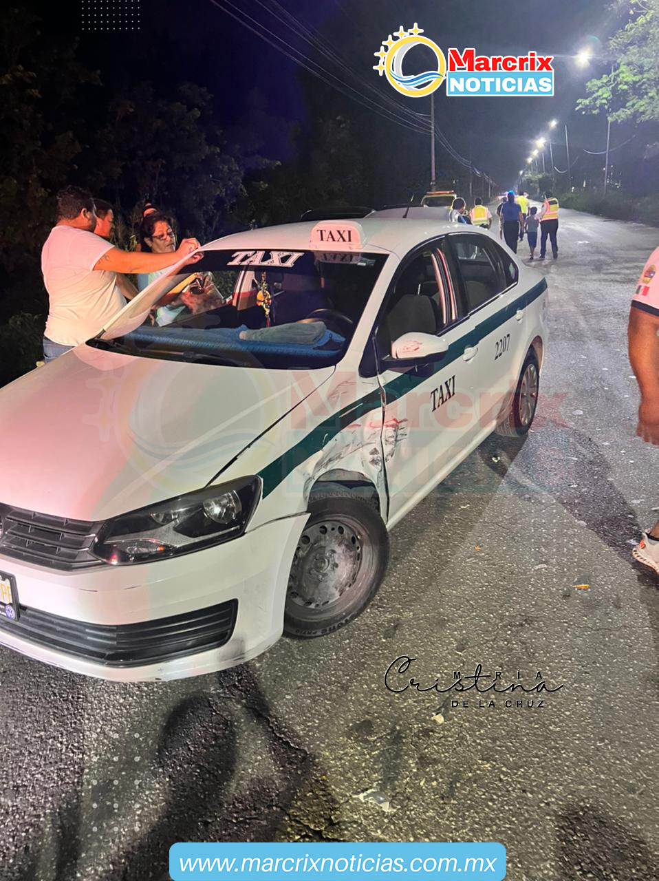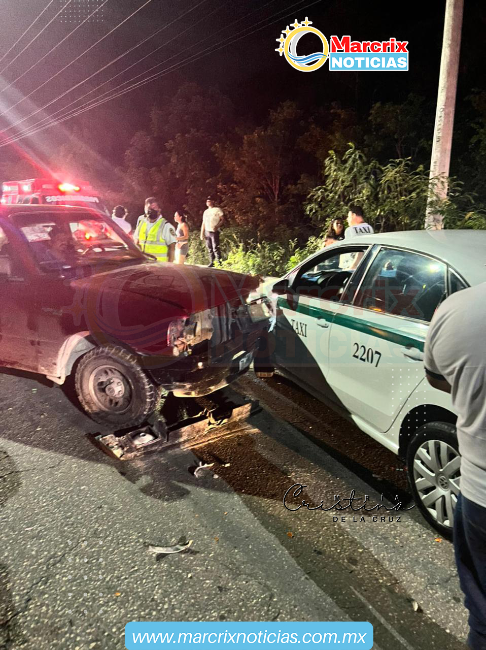 Cancún (Marcrix Noticias).- La noche de hoy domingo se registraron dos choques sobre avenida Periférico de Cancún, donde se vieron involucrados siete vehículos, entre ellos, un taxi de Cancún y otro de Isla Mujeres.